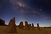 昼間とは趣きの異なるピナクルズだけでなく、行く途中で野生に近いコアラやカンガルーを見たり、帰りには夜空の名所で南半球の星空を観賞します。夕食付。