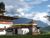 1974年に建立された第3代目国王ジクミ・ドルジ・ウォンチェックの霊廟も兼ねた3階建ての仏塔。仏塔内は忿怒形の歓喜仏による立体曼荼羅が鮮やかに繰り広げられています。朝から晩まで参拝に訪れる人々で賑わっています。 <ティンプー> |