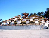 標高約3150mに位置するドチュラ峠。2004年、当時の王様の第一婦人が国王や国の為に建てられた108基の仏塔が整然と並んでいます。この辺りではヒマラヤ五葉松が空高く枝を伸ばし、天気が良ければマサ・コン(7194m)を望むことが出来ます。 <プナカ> |