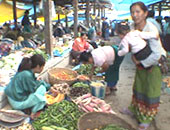 ブータン料理には欠かせない唐辛子をはじめ野菜、食料品などが所狭しと並べられており、ティンプーの人々の普段の生活を垣間見る事の出来るマーケットです。 <ティンプー> |