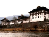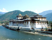 プナカ近郊の小さな農村の小高い丘の上にあるお寺です。別名子宝の寺とも呼ばれておりブータンの人々に親しまれています。 <プナカ> |