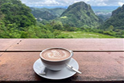 チェンライ市内から車で北へ約55分。メーチャン郡の茶畑の敷地内にあるお茶畑カフェ。茶葉を使ったドリンクやスイーツをお楽しみ頂けます。開放的なカフェからは濃い緑が美しい茶畑の絶景が広がります。