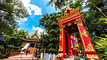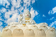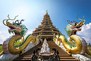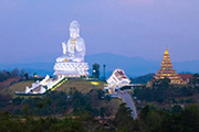 チェンライ市内から北西に車で約20分。小高い丘の上にあるこの寺院には、純白の外観が目を引く高さ69mもの巨大な観音像が鎮座れされいます。チェンライの美しい街並みを一望できる風光明媚な寺院です。ランナーと中国の融合したスタイルをぜひご覧ください。