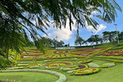 チェンライ中心部から車で約30分。「メーファールアンガーデン」は、北部の開発推進計画の一部として皇太后が造成を推進したフラワーガーデン。園内の華やかなイギリス式庭園はまだタイ国内では珍しく、一見の価値あり。広大な敷地に一年を通して色鮮やかな花々が咲き誇り、まさに百花僚乱の名所といえます。