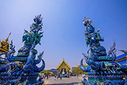 ワット・ロンスアテンは、別名「ブルー・テンプル」とも呼ばれています。熟練した職人の感性と技が生み出す、青が美しく独特な雰囲気の寺院です。