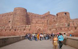 ムガール帝国第3代皇帝アクバルが、8年の歳月をかけて築いた赤砂岩の堂々たる城。ここから眺めるタージ マハールは印象的。 |