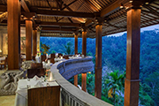 バリ島らしい雰囲気を求める方にはイチオシ!ウブド中心部から車で20分ほど離れた渓谷にあり、深い森林に抱かれたリゾート。伝統的なウブドの村を演出しており、写真に撮りたい景観がそこここにあります。客室は重厚なバリスタイルのヴィラ300平米。壁には芸術的な彫刻が施され、森林の眺めが良く、緑色のプライベートプール付。バリ建築が好きな方、優雅な気分で過ごしたい方にお勧めです。但し、敷地内には石の階段が多いので、健脚のお客様向きです。