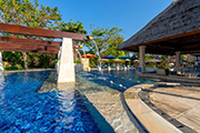 ヌサドゥアの北、タンジュンベノア地区でビーチに面した大型ホテル。ファミリー向けエリアがあり、ミニウォーターパーク等でお子様が思い切り遊べます!大人は大人専用プールとタラソテラピーのスパでリラックス。今回は朝食のみプランを標準としていますが、バリでは数少ない「オール インクルーシブ パッケージ」 にすれば朝食・昼食・夕食、アフタヌーンティー、ソフトドリンク・アルコール飲料(グラスのみ)、ランドリー(2枚/1人/1泊)、カタマラン、ウィンドサーフィン等も料金に含まれます。