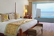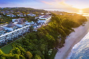 ヌサドゥアの高台に建つ絶景ホテル。バリコレクションから約15分。全81室、デザインはモダン。海の眺めが最高な「オーシャンフロント スイート」はホテルタイプ。広々135平米、全室キングベッド、バルコニーで波の音を聞けます。崖の下には綺麗なプライベートビーチがあり、専用リフトで降りて行きます。ホテル内レストランは2つ。オールインクルーシブプランでなくてもソフトドリンクとアフタヌーンティーが無料。街へ出るには不便。一日海を見て過ごしたいカップル向きですが、キッズクラブもあります。