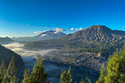 バトゥール山、カルデラの外輪山と、コバルトブルーのバトゥー