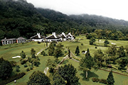 ビーチエリアから車で約2時間半かかりますが、標高1,000メートル以上の高原にあるので爽やかにプレイを楽しめます。入口の割れ門はインスタ映えスポット。バリのゴルフ場の草分けで、国際的な賞も受賞した名門コースです。