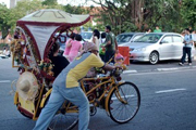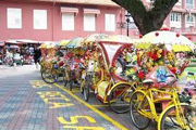 数多くの建物やアトラクションを回るのに最適なのが、「トライショー」と呼ばれる自転車タクシー。自転車には色鮮やかな花が飾られ、中には電飾を施したり、音楽を流すものもあります。マレーシアで乗れるのはマラッカとジョージタウン(ペナン島)のみです。※本コースでは体験乗車付きです!!