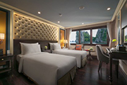 *1 「子供ベッドなし(2-4歳)」の料金は 10,200バーツ です。 *1 「子供ベッドなし(2-4歳/5-10歳)」は1部屋1名までとなります。 *除外期間:クリスマス&年末年始(12/24 - 1/5)、ベトナム正月<テト>(2/10 - 2/24)、ソンクラン(4/11 - 4/19) クルーズにガイドは乗船しません(船内は英語案内となります)。 クルーズ定員:大人2名+10歳以下の子供2名、または大人3名まで1室利用可。 ※ご家族連れにはトリプルルームやコネクティングルームのご案内が可能です。 泊:ハノイ ホテル デュ パルク ハノイ (旧 ニッコーホテル)